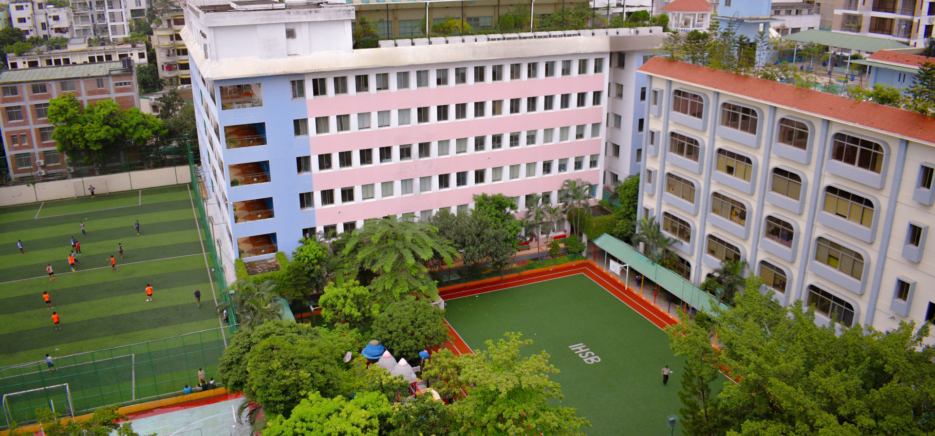At IHSB, we believe that true learning extends beyond the classroom, empowering students through diverse co-curricular activities and clubs. Our programs nurture holistic growth by engaging students in sports, the arts, volunteering, and STEAM (Science, Technology, Engineering, Arts, and Mathematics) initiatives. With exceptional on-site facilities, students have access to: A well-stocked library Professional football turf Multifunctional indoor sports area Basketball court Tennis court Fully-equipped gym Dedicated kids' playgrounds